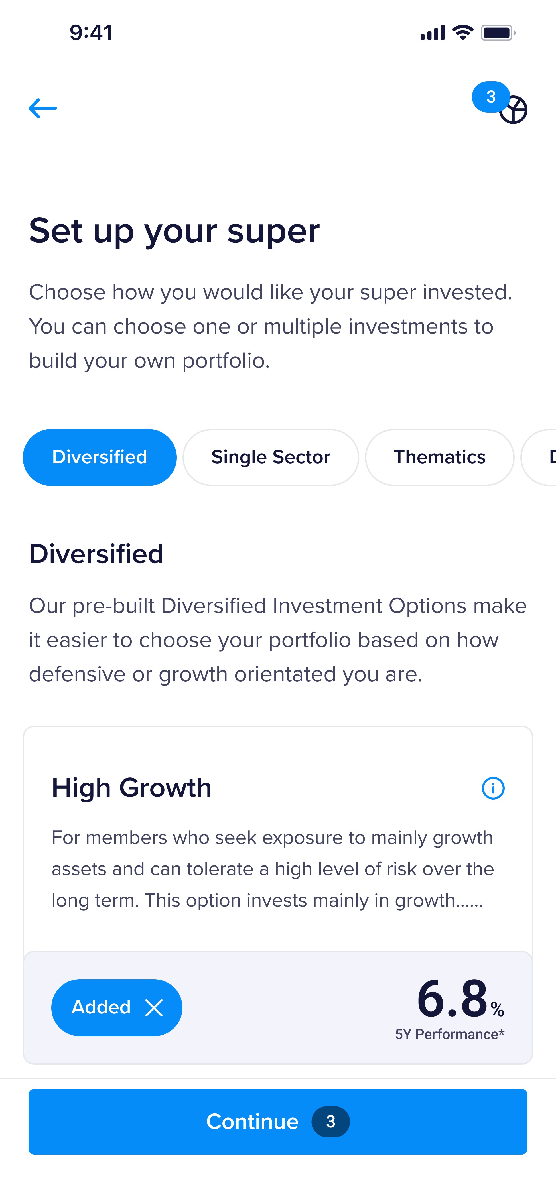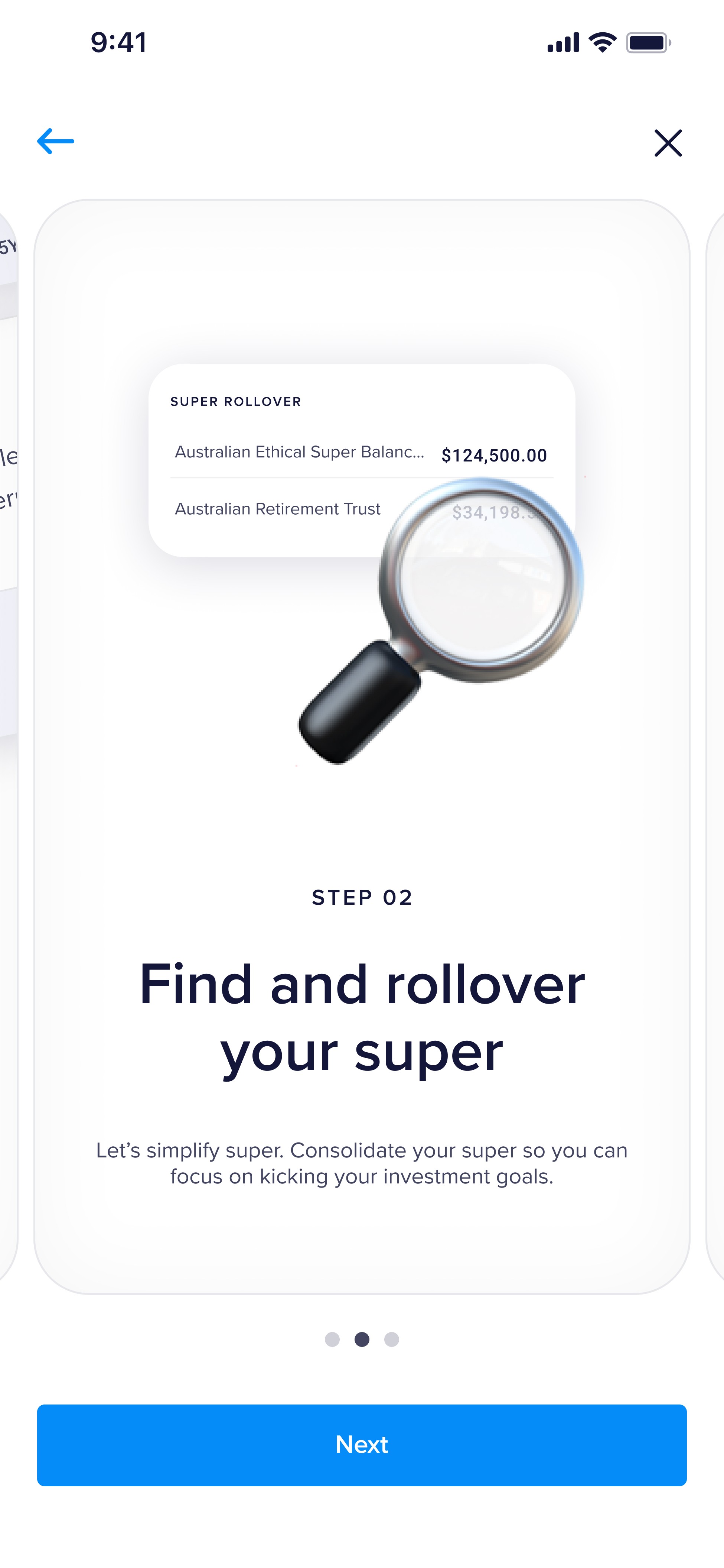 The end-to-end research and design of a new superannuation (retirement) platform for users that resulted in over 15,000 new customers on launch and an 10% increase in existing customer engagement within the first month of launch.