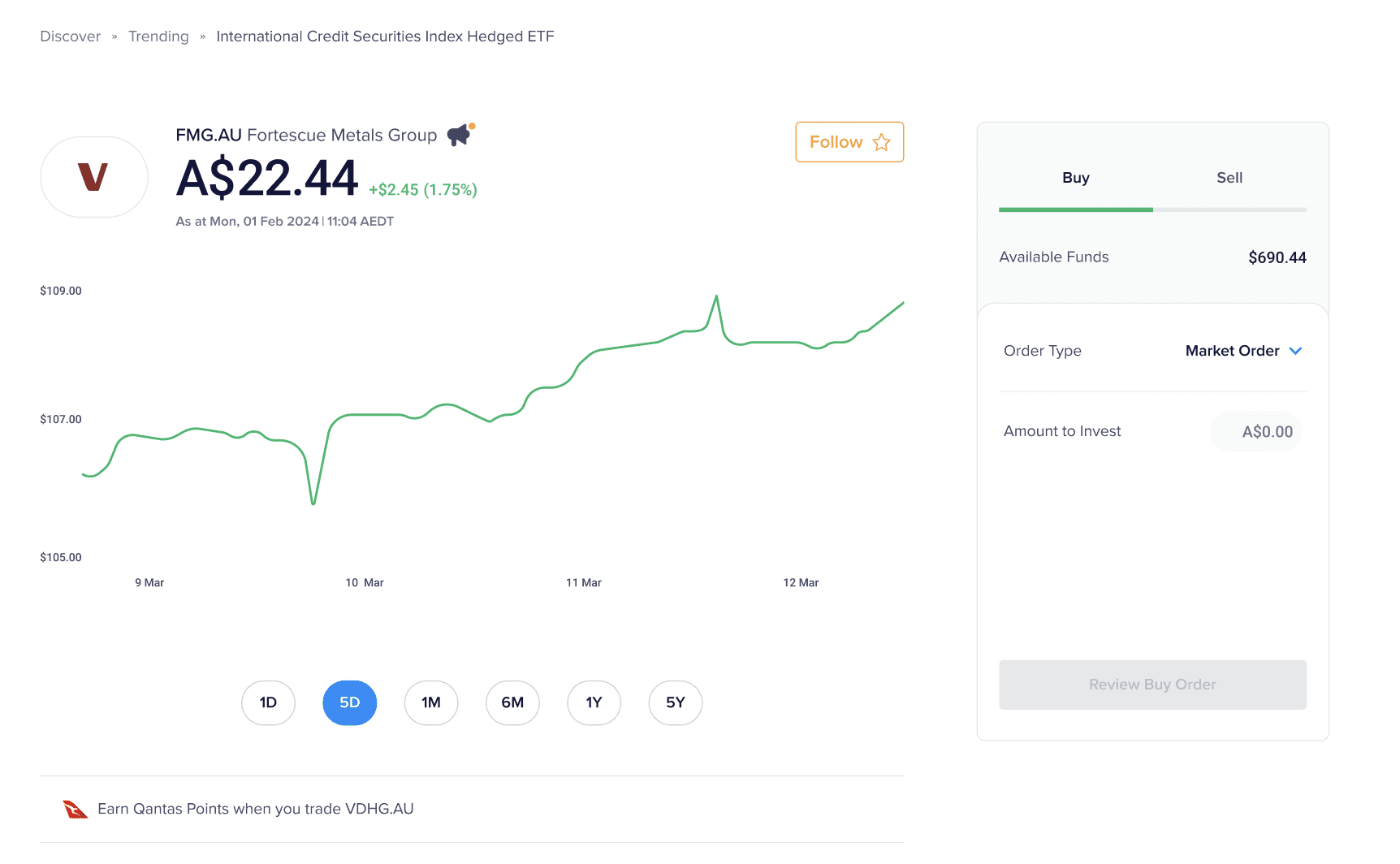 By allowing users to place an order directly from a security details page, we have reduced clutter and the number of clicks required to purchase a stock by 40%.